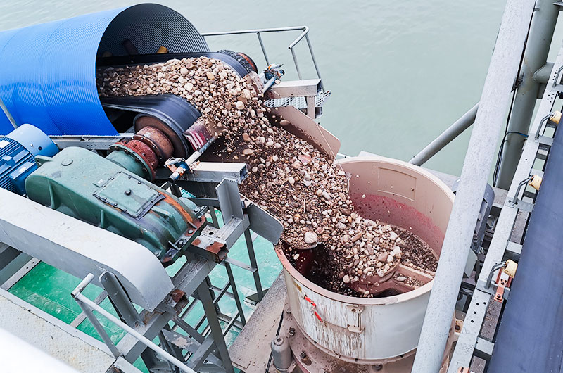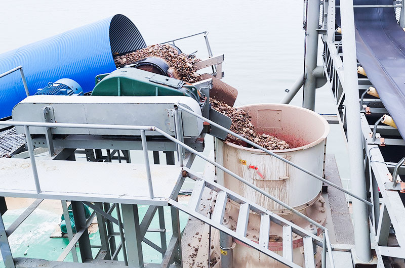 生產(chǎn)情況:首先,河卵石(鵝卵石)由顎式破碎機進(jìn)行初步破碎,然后,產(chǎn)成粗料由膠帶輸送機圓錐破碎機進(jìn)行進(jìn)一步破碎,細(xì)碎后的石料進(jìn)振動篩篩分出兩種石子,滿足制砂機進(jìn)料粒度的石子進(jìn)制砂機制砂,另一部分返料進(jìn)行再破碎。整個制砂生產(chǎn)線自動化程度高,運行成本低,破碎率高,生產(chǎn)出的機制砂符合國家建筑砂標(biāo)準(zhǔn),粒度均勻,級配合理。